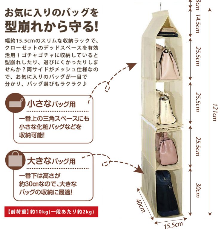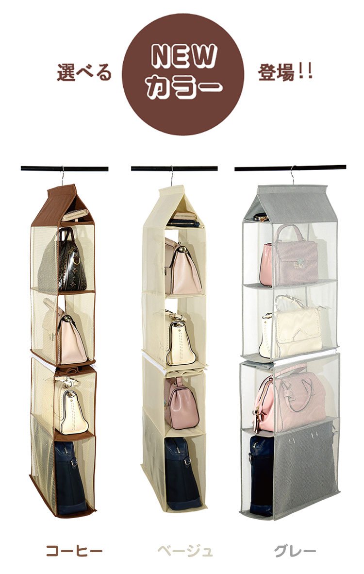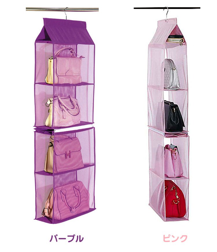 収納ラック 2点目から無料 バッグ収納 4段式 カバー付き ハンガーラック 収納ボックス 取り外し可能
