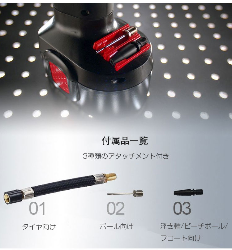 電動エアコンプレッサー 期間限定2点目から4000円 空気入れ コンパクト エアポンプ コードレス式 ポータブル LEDライト